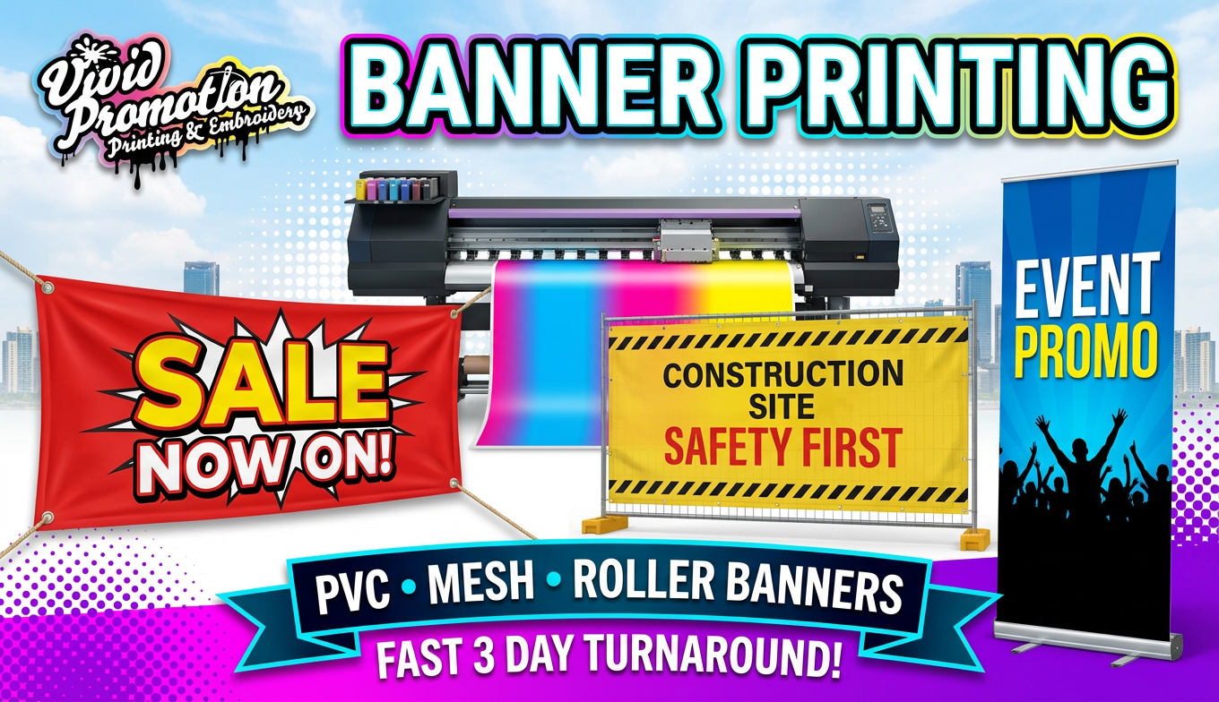 Banner printing in Market Drayton & Telford. PVC, mesh & roller banners with fast 3-day turnaround. Get a quote today from Vivid Promotion.