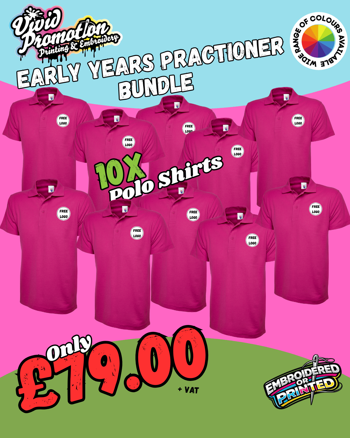 10 Uneek UC101 Polo Shirts Bundle | Bulk Staff Polos With Logo | Nursery Staff Uniform Bundle Deals