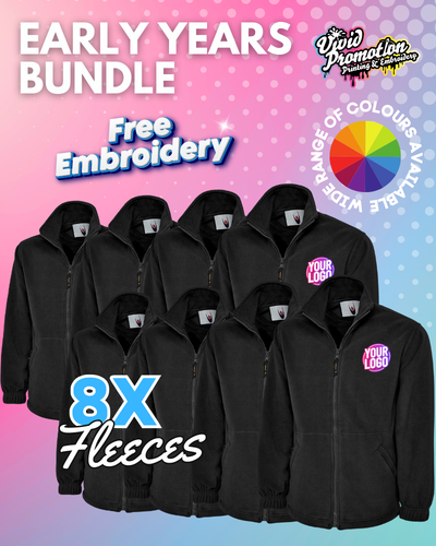 Bundle price: £129.95 + VAT for 8 embroidered-ready UC604 fleece jackets—a simple way to kit out a team with consistent nursery workwear layers.