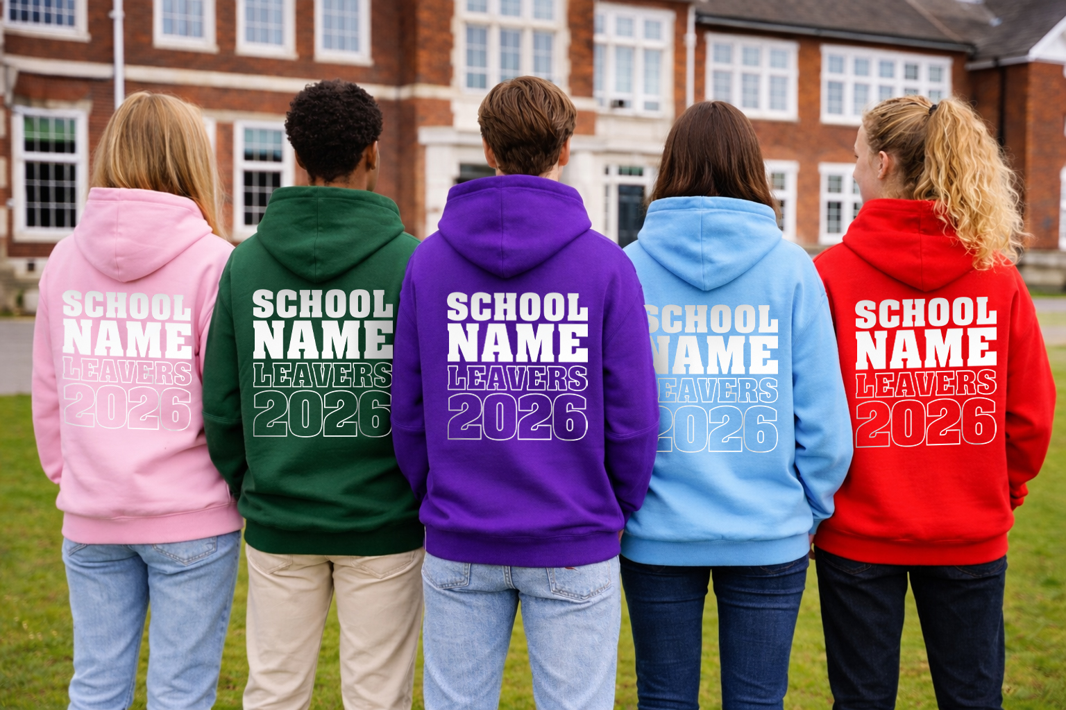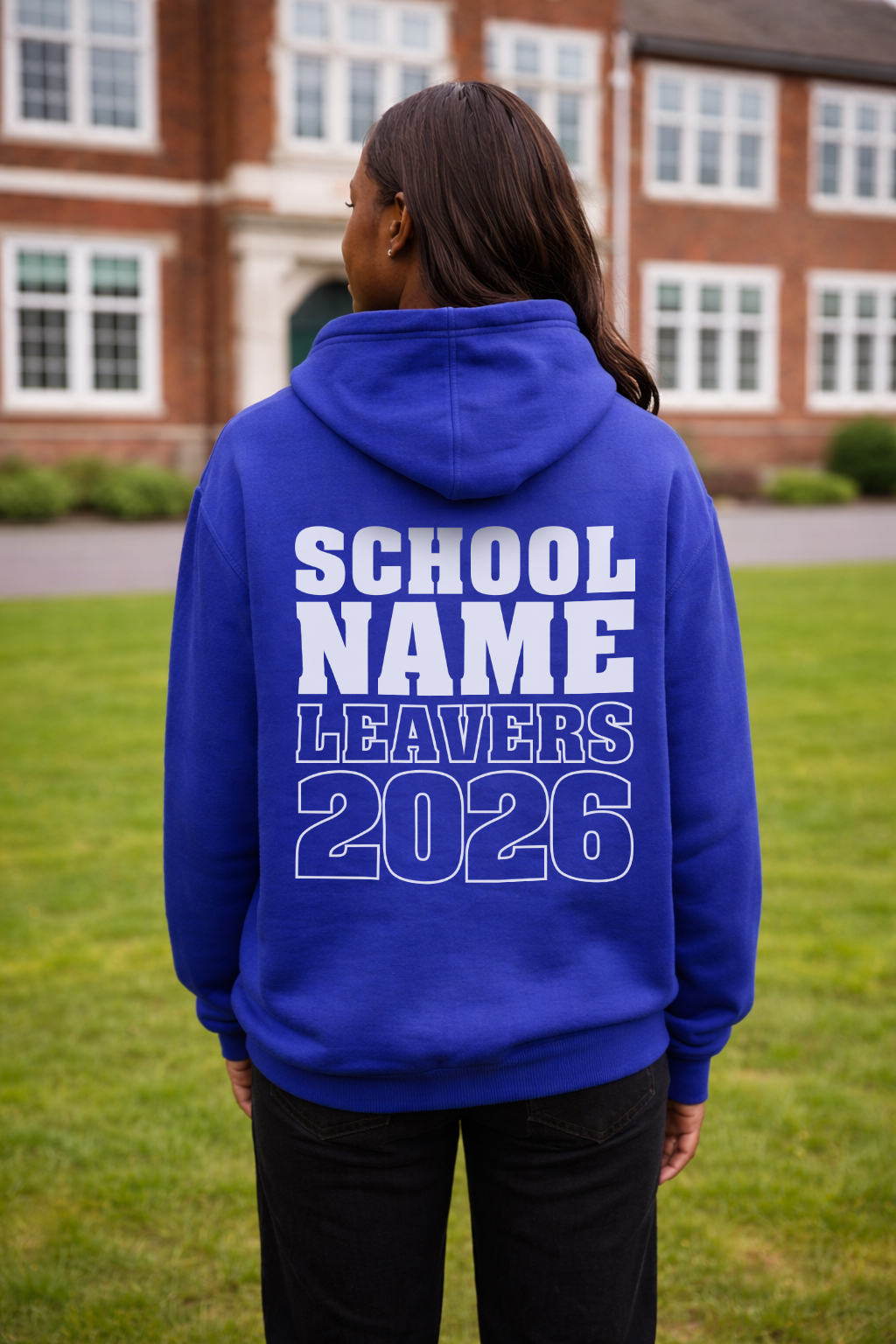 - Large back print with SCHOOL, NAME and LEAVERS
