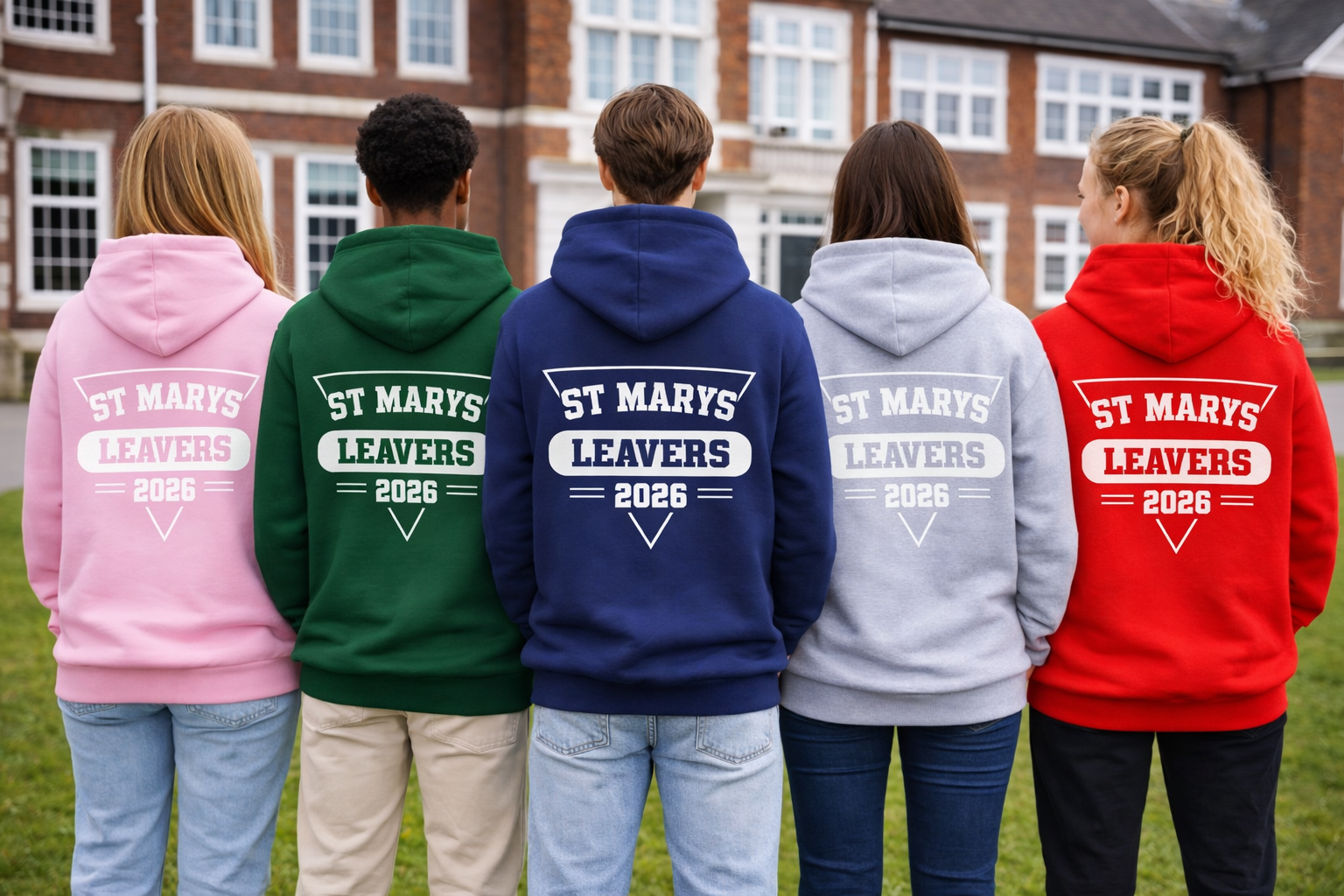 Leavers hoodies are typically ordered in groups, but minimum quantities are flexible. Contact us if you’re unsure.
