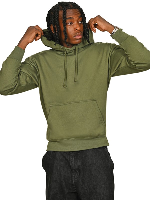 Why it’s ideal for personalisation: the tight knit gauge fabric helps deliver cleaner-looking prints, while the steady mid-weight fleece gives embroidery a solid base—great for left-chest logos, back designs, and sleeve branding on a personalised casual hooded sweatshirt.