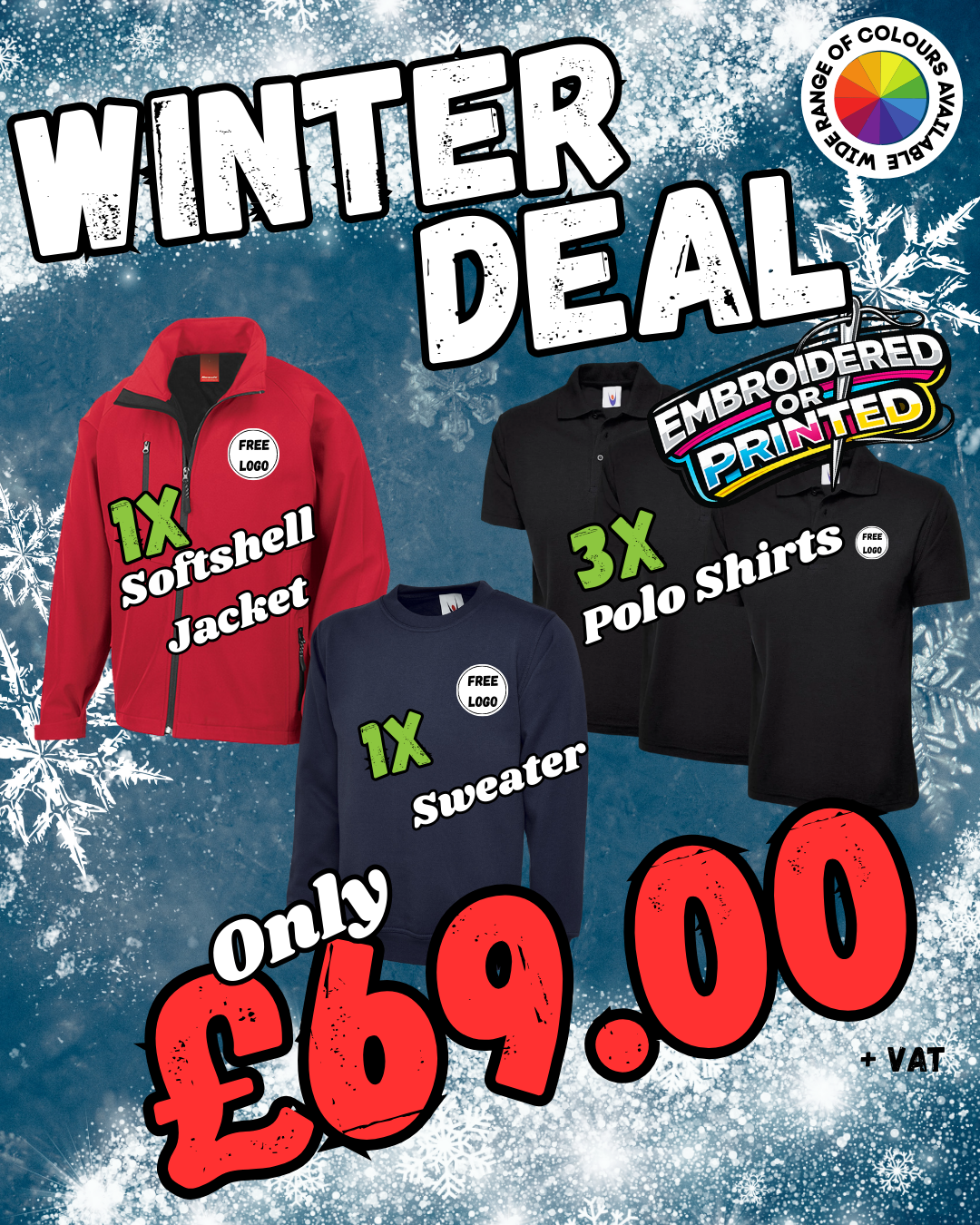 Every garment in this bundle includes FREE branding on the left chest—you choose embroidery or print, and we’ll apply the same logo position across all items for a clean uniform finish. We also include FREE logo setup on our bundle deals, so there’s no extra charge to get your artwork production-ready.