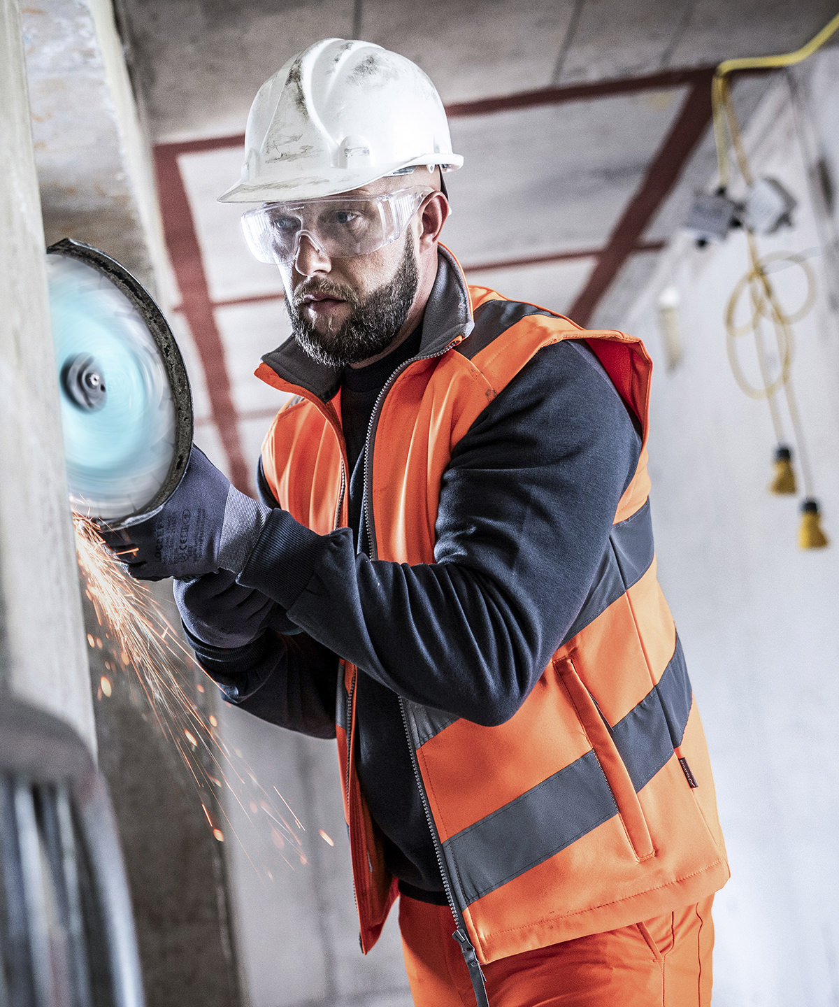 The Hi-vis Pro contract Ablaze softshell bodywarmer, from Regatta Professional, delivers durable comfort and certified visibility. Made with warm-backed softshell fabric, it’s EN ISO 20471:2013 + A1:2016 Class 2 compliant, with RIS-3279-TOM certification on orange styles. Featuring lower zipped pockets, a fleece-lined collar and a zip guard.