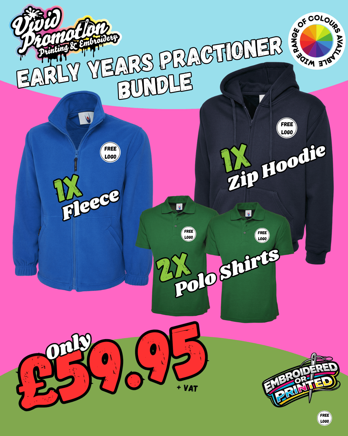 We understand nurseries. Before Vivid Promotion focused on branded workwear and personalisation, we owned and operated three Ofsted Outstanding nursery settings—so we know what childcare teams need from uniforms in real working days.
