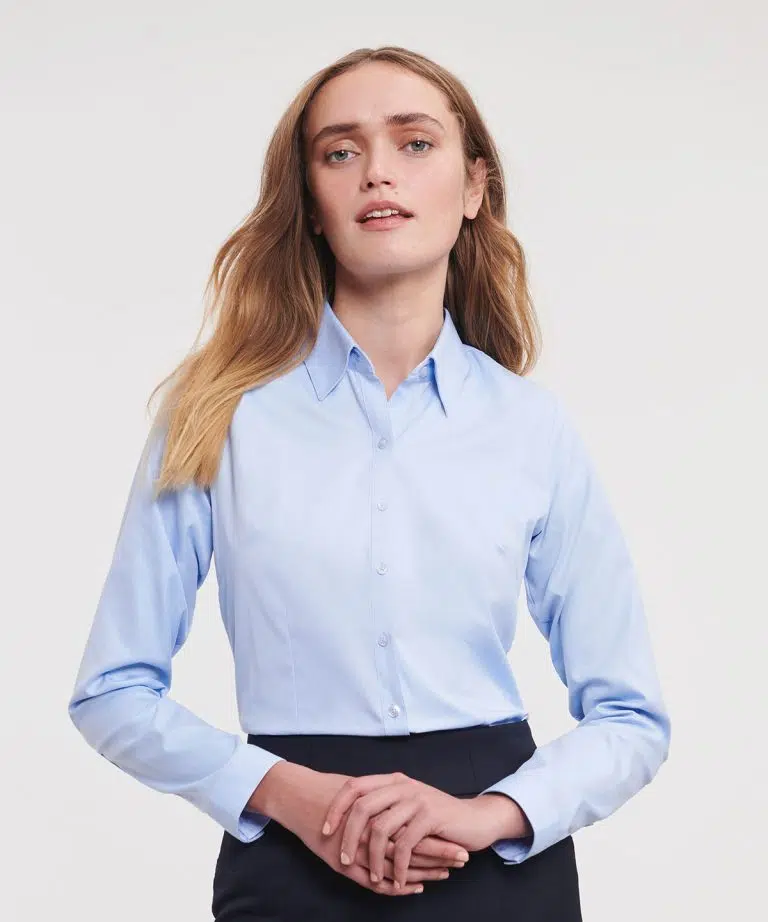 Russell Collection – Womens Long Sleeve Herringbone Shirt J962F | Russell Collection Shirts & Blouses
