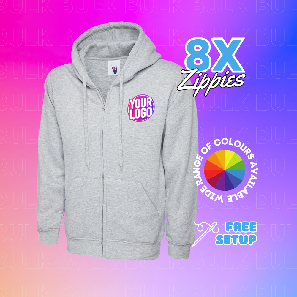 UNEEK Classic Full Zip Hooded Sweatshirt x 8 | Bulk Bundle | Hoodie Bundles